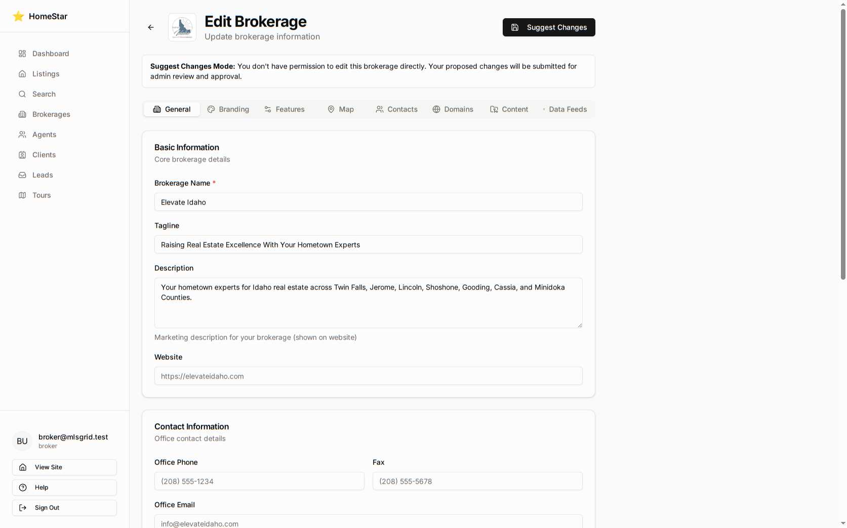 Suggest mode screenshot: Broker editing brokerage settings